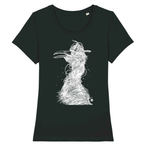Ce t-shirt femme en jersey simple 100% coton biologique porte un dessin au stylo bille de l’artiste Georges Drumez.